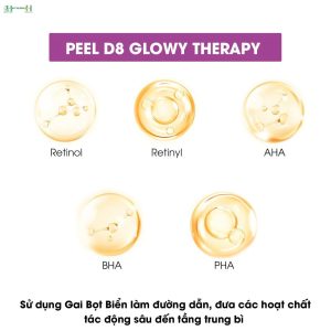 Thúc đẩy tái tạo tế bào da, làm mờ vết thâm, đốm nâu và cải thiện sắc tố. Giảm nếp nhăn nhỏ, tăng sản